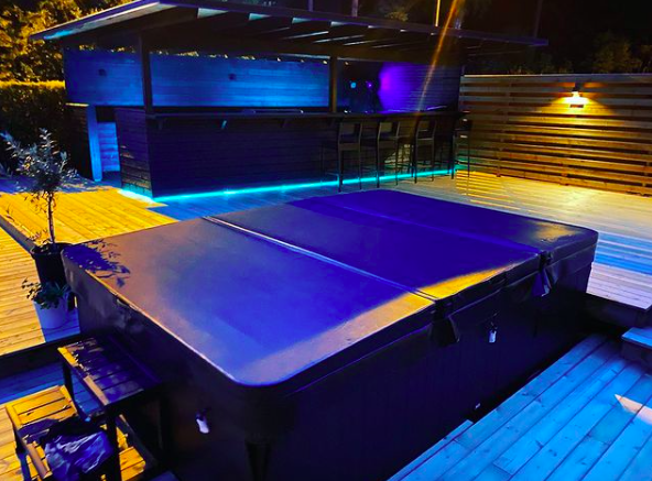 En riktigt läcker altan med SPA och utekök-delux som vi byggde våren 2020.