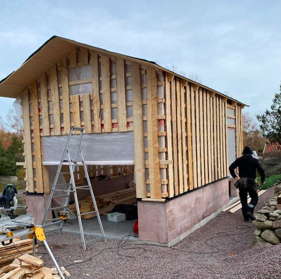 Efter: Nu klär vi garaget med okantade panelbrädor. Dessa oljas sedan in och får en nästan svart ton.